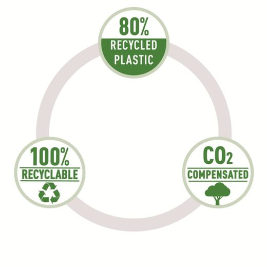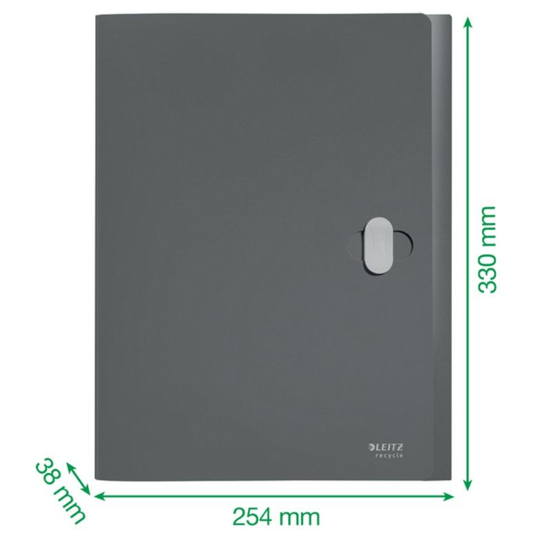 Box file in PP ad alta capacità di alta qualità e dal design accattivante per l'uso quotidiano a scuola, in ufficio e a casa. Realizzata in plastica riciclata all'80%, a zero impatto climatico grazie alla riduzione a alla compensazione delle emissioni di CO2, 100% riciclabile e con certificazione ambientale Blue Angel. Questa robusta e pratica box file si abbina perfettamente con altri prodotti della gamma Leitz Recycle ed è molto resistente. Prodotto di cancelleria green, moderno e contemporaneo che ravviva la casa e l'ufficio. Con la nuova gamma ecologica Leitz Recycle puoi sia migliorare il tuo ufficio che prenderti cura del nostro pianeta